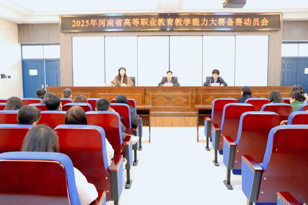 为进一步实现以大赛为引擎,聚力锻造“金师”队伍,3月6日下午,学院在天鹅湖校区1106会议室召开2025年河南省高等职业教育教学能力大赛备赛动员会。各院部教学副院长、备赛团队、校内指导教师及教务处相关工作人员参加了会议。会议由教务处李安飞主持。