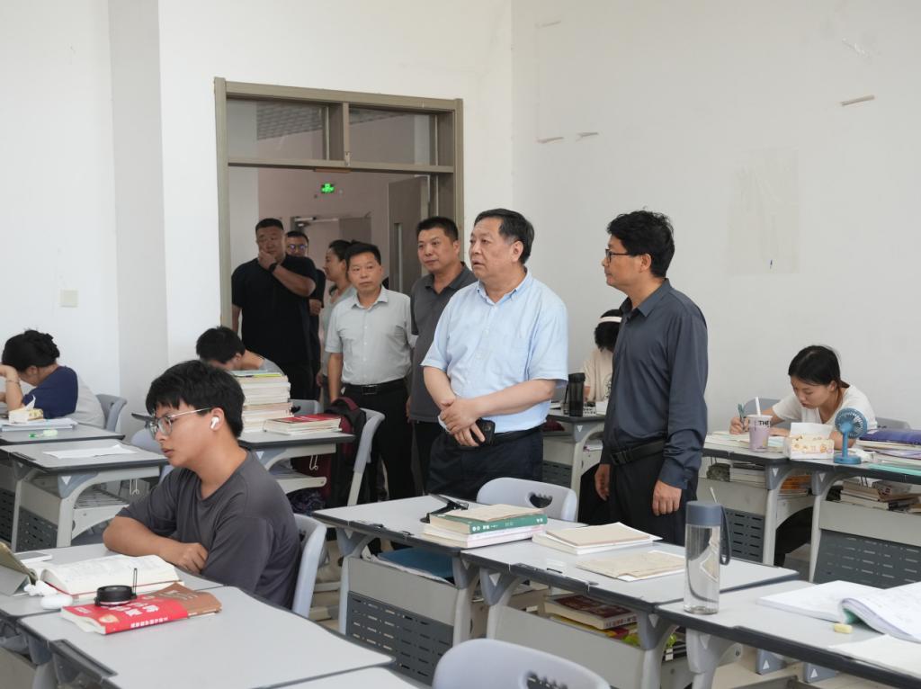 随后,颉潭成一行前往应用工程学院校区,看望暑期留校备战考研的学生,并组织召开师生座谈会。会上,同学们围绕学习规划、生活服务、设施保障等方面畅所欲言,积极建言献策。颉潭成认真倾听每一位同学的诉求,针对反映集中的饮用水保障、生活用品便利购买等问题,当场协调相关部门落实解决,并提出三点要求,一是相关部门强化服务,始终坚持以学生为中心。要持续优化暑期后勤服务保障体系,努力为留校学子营造安心、舒心、温馨的学习生活环境。二是考研学子认真备考,利用环境沉着应考。考研学子要坚定信念、科学规划、努力实现个人追求,取得优异成绩,考入心仪研究生学院。三是学习过程注意安全,生活出行提高警惕。所有留校学生在学习和生活中要提高对险情的防御能力,不到危险的水域、人员密集等场所,恶劣天气不外出,学习过程要劳逸结合,合理安排假期生活。