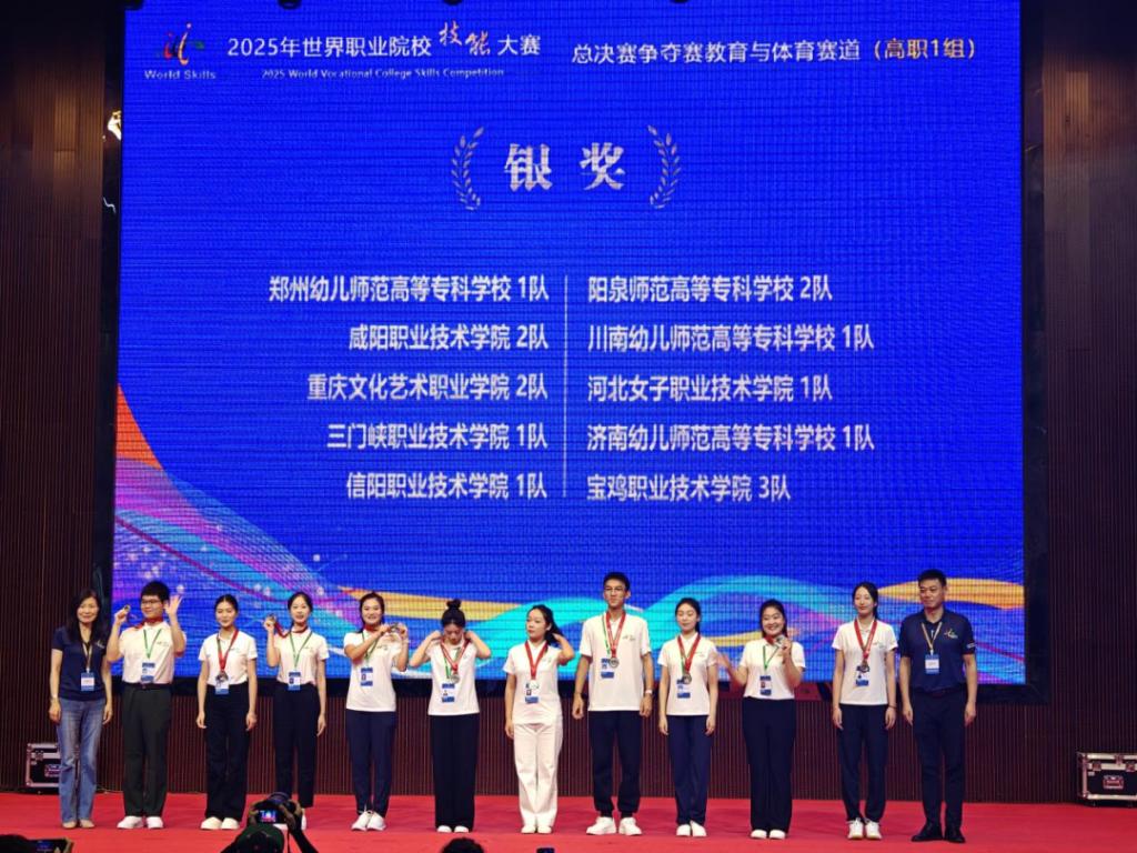 8月31日,2025年世界职业院校技能大赛“教育与体育赛道”(高职一组)总决赛在湖南长沙落下帷幕。学院参赛团队与来自全国31个省、市、自治区的119支代表队同台竞技,凭借过硬的专业功底、无缝的团队协作与突破创新的实战能力勇夺银奖,较去年的铜奖实现再次跃升和突破。