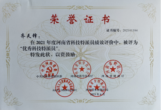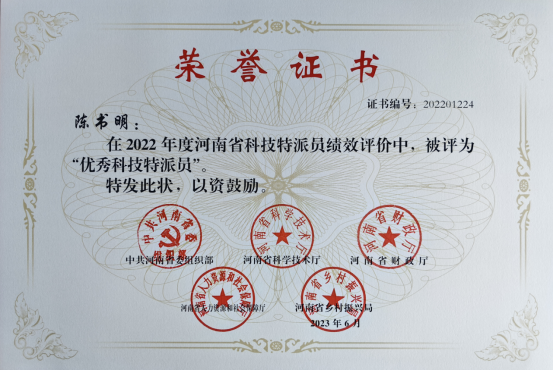 3位老师荣获“河南省优秀科技特派员”称号,既是其个人的荣誉,也是对我院科技特派员工作的肯定,充分展示了我院在科技创新和社会服务方面的实力。下一步,我院将继续深化科技特派员工作,培养更多优秀的科技人才,推动科技成果转化,提升技术服务能力,为创新驱动战略和地方经济发展实施贡献力量。