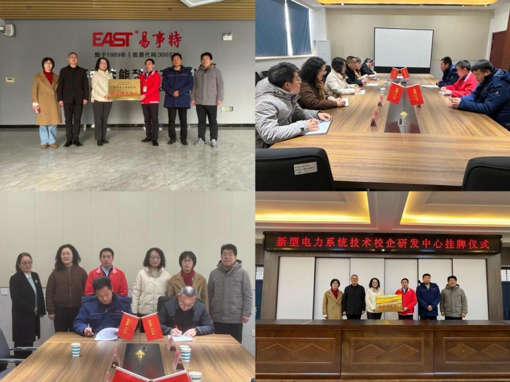 12月30日,学院与易事特储能科技有限公司举行“新型电力系统技术校企研发中心”挂牌仪式。学院科研处处长陈玮、智能制造学院学生工作负责人王肖飞、研发中心高校负责人吴萍、智能制造学院实训中心负责人葛笑寒,易事特储能科技有限公司部长齐俊辉、总监肖佣军、人事经理安金召等出席活动。在双方代表的见证下,陈玮与齐俊辉签署了合作协议,并共同为“校企研发中心”揭牌。