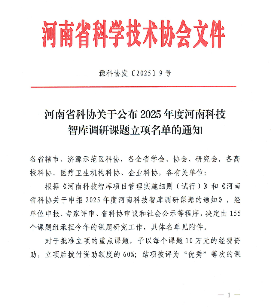 河南科技智库课题是河南省科协紧紧围绕省委、省政府中心工作,面向全省各高校、科研机构、重点企业等,组织开展战略性、前瞻性、针对性决策咨询研究,提出专业化、建设性的决策建议类课题,助推河南经济社会高质量发展。