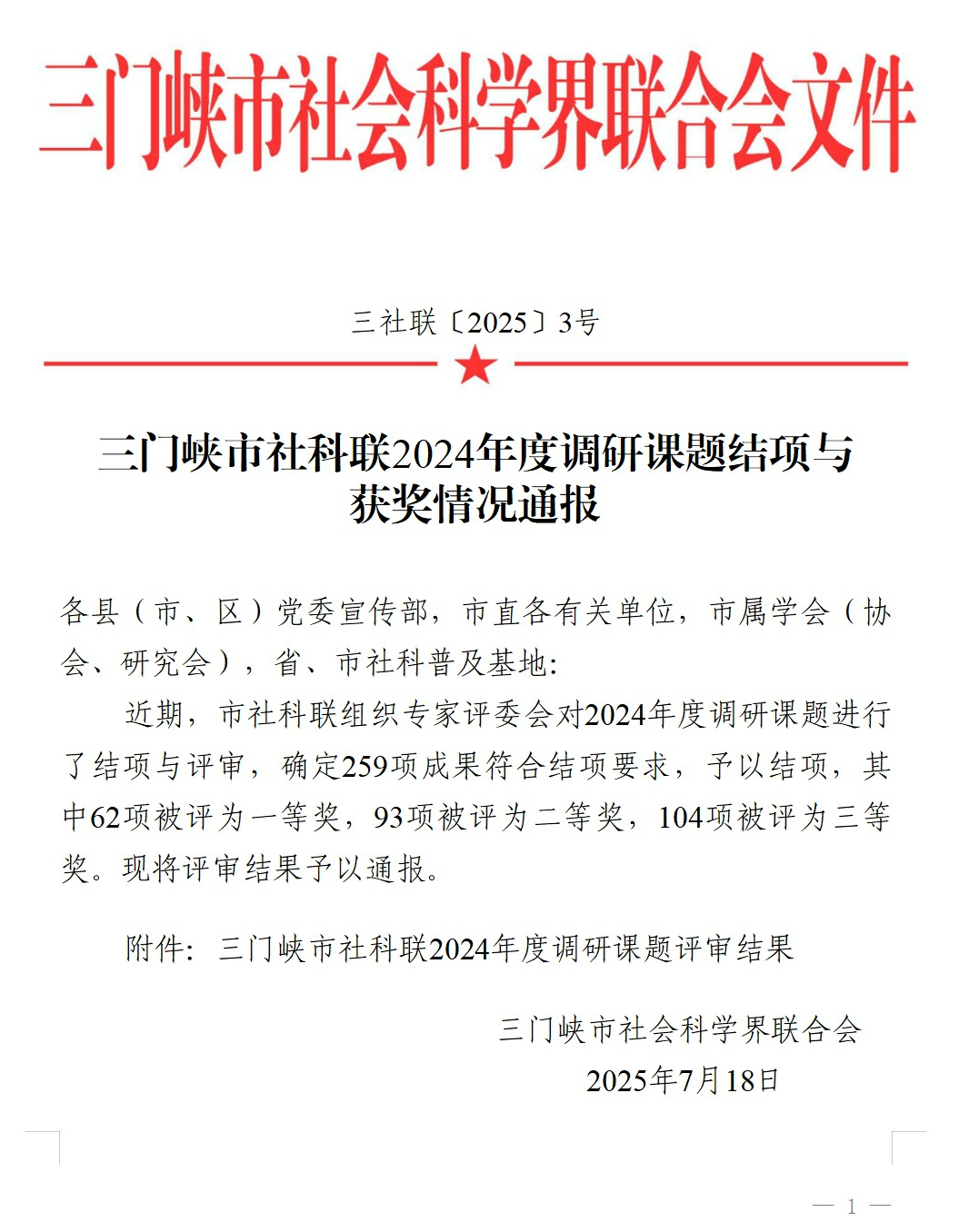 附件:1.三门峡市社科联2024年度调研课题一等奖项目