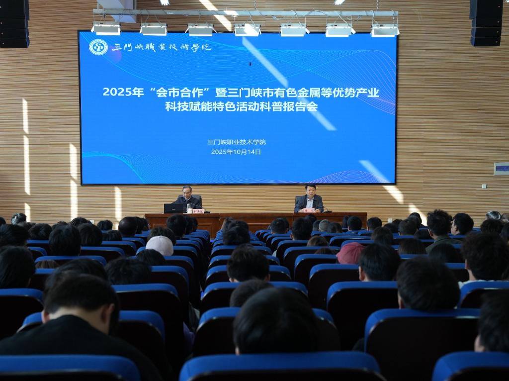 10月14日,“会市合作”暨三门峡市有色金属等优势产业科技赋能特色活动科普专场报告会在学院举行。河南省科协党组书记尹洪斌作题为《加强科学技术普及 为高水平科技自立自强和高质量发展筑牢根基》的科普报告。三门峡市委副书记、政法委书记赵建玲,学院党委书记杨彤、三门峡社会管理职业学院院长魏雷东,三门峡市科协党组书记、主席彭增康出席报告会。学院领导班子成员、各县(市、区)科协系统人员、市首席科普专家、学院和三门峡社会管理学院师生代表200余人参加活动。报告会由学院党委书记杨彤主持。