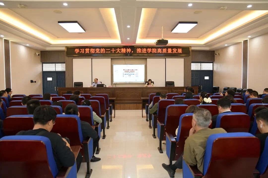 为深入学习贯彻党的二十大精神,进一步增强“四个意识”、坚定“四个自信”、做到“两个维护”,打造忠诚干净担当的高素质专业化干部队伍,推动学院工作高质量发展。4月27日下午3点,学院机关党委在1106会议室举办“深入学习贯彻党的二十大精神,推进学院高质量发展”报告会,邀请副院长黄世谋作专题报告。各二级学院教学副院长和机关全体党员干部参加,机关党委负责人聂月仙主持报告会。