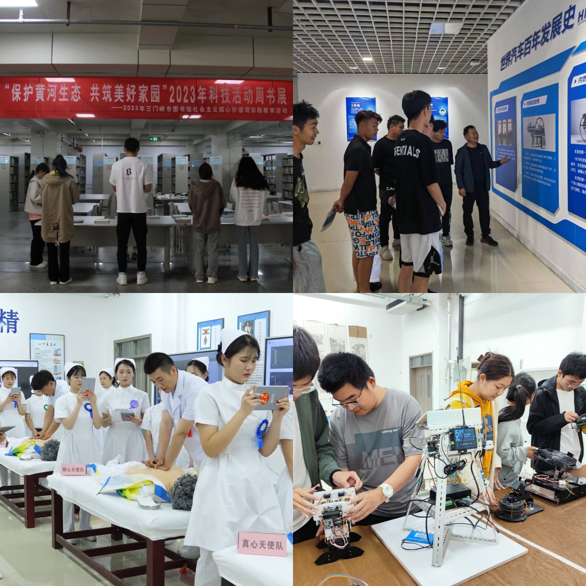 三是开展科普活动,激发科学热情。活动周期间,我院的校内实验实训室面向师生全面开放,激发师生好奇心、想象力和探求欲。智能制造学院面向学生科普智能制造虚拟仿真、工业机械自动化、自动化生产线及PLC编程控制应用等知识,学生在教师的指导下体验了电机调速和PLC编程等项目;医护学院在人体生命馆借助标本讲解人体奥秘,在中药实验室让学生学习参与中药的制作过程,让学生更深入了解中医药文化。这些科普活动,激发了学生“热爱科学、崇尚科学”的热情,从科学仪器设备、科研项目成果、科研活动过程等不同视角,进行参观、参与,进一步培养了广大学生的创新精神与科技素养。