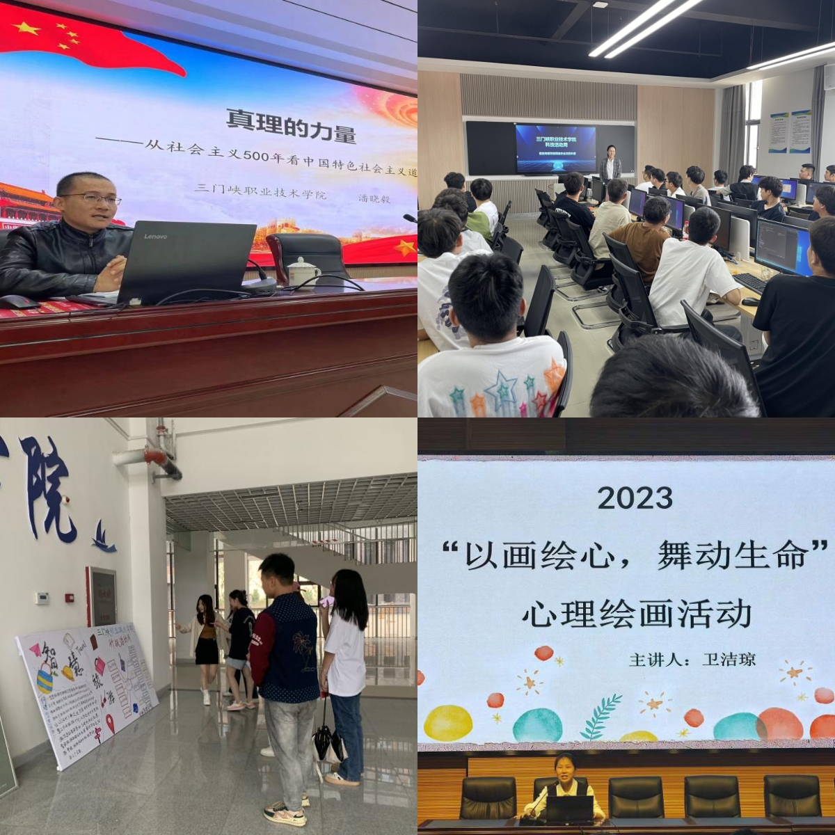 四是举办科普赛事,展览科技作品。为进一步引导师生积极学习科学文化知识,培养科普意识和能力,信息传媒学院与师范学院分别开展了学生技能竞赛活动与教师科普知识竞赛活动,智能制造学院展出挑战杯及“互联网+”大赛等获奖作品,经济管理学院面向学生开展“何谓智慧旅游”科技展览等活动,这些交流活动将科普知识贯穿人才培养,融入专业发展,促使学生树立科技创新和科学强国的理念。