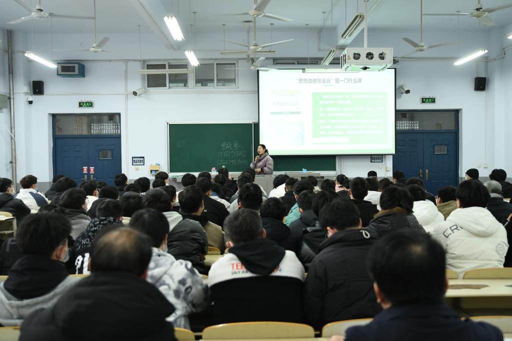一年春作首,万事行为先。2月13日上午,党委书记杨彤走进马克思主义学院青年教师曹晓展的《思想道德与法治》课堂,与2022级青年学生共上开学思政第一课。教务处处长员莹、马克思主义学院院长孟昭阳、教务处相关人员及马克思主义学院部分教师参加了听课。