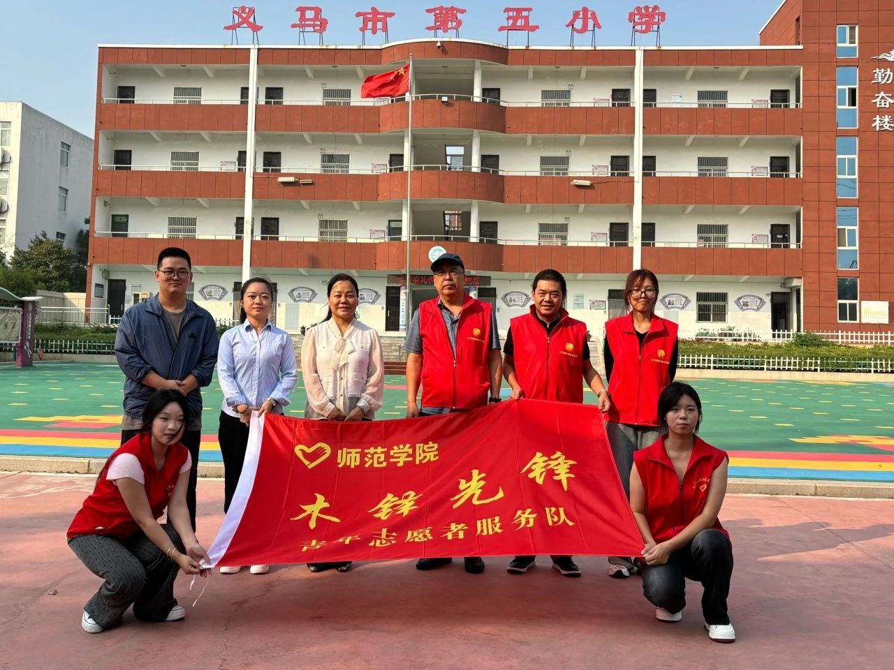 2024 年 9 月 26日,必一运动师范学院党总支书记樊卫兵、学生工作负责人林博及专业教师姜嘉文老师带领学生前往义马市第五小学进行必一运动美育实践基地挂牌仪式,并在此开展美育实践课。