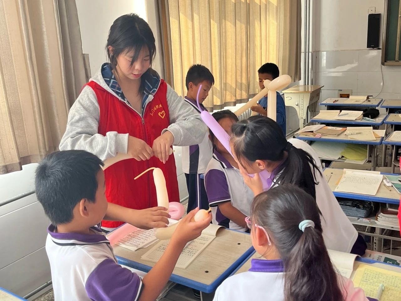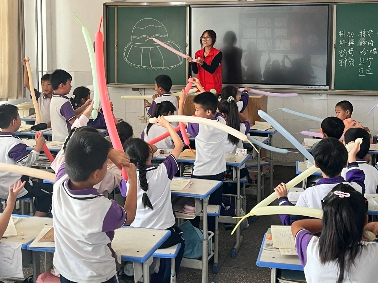 随后,学生们在姜老师的带领下,开始了精彩的美育实践课—折气球,五彩的气球在一双双巧手下变幻出各种可爱的形状,仿佛被赋予了生命。这不仅仅是一次简单的手工课,更是一场发现美、创造美的心灵之旅,让美育之花在义马这片土地上绽放出别样的光彩。