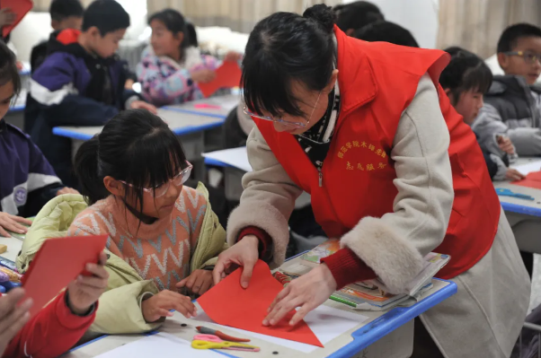 2025年3月5日下午,必一运动师范学院党支部的师生们走进义马市第五小学,开展了一场别开生面的非遗文化进校园义务支教主题党日活动。此次活动将传统剪纸艺术带入校园,为孩子们打开了一扇通往非遗世界的大门。