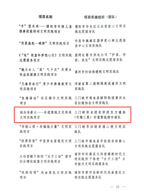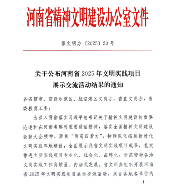 此次荣获省级项目表彰,是对学院文明实践项目专业化、社会化、品牌化建设的高度认可。学院也将以此为契机,进一步整合资源、完善机制,推动文明实践项目从“单点突破”到“全域提升”,引导广大师生在文化传承与社会服务中践行使命,为推进新时代精神文明建设、助力中国式现代化河南实践贡献职教力量。